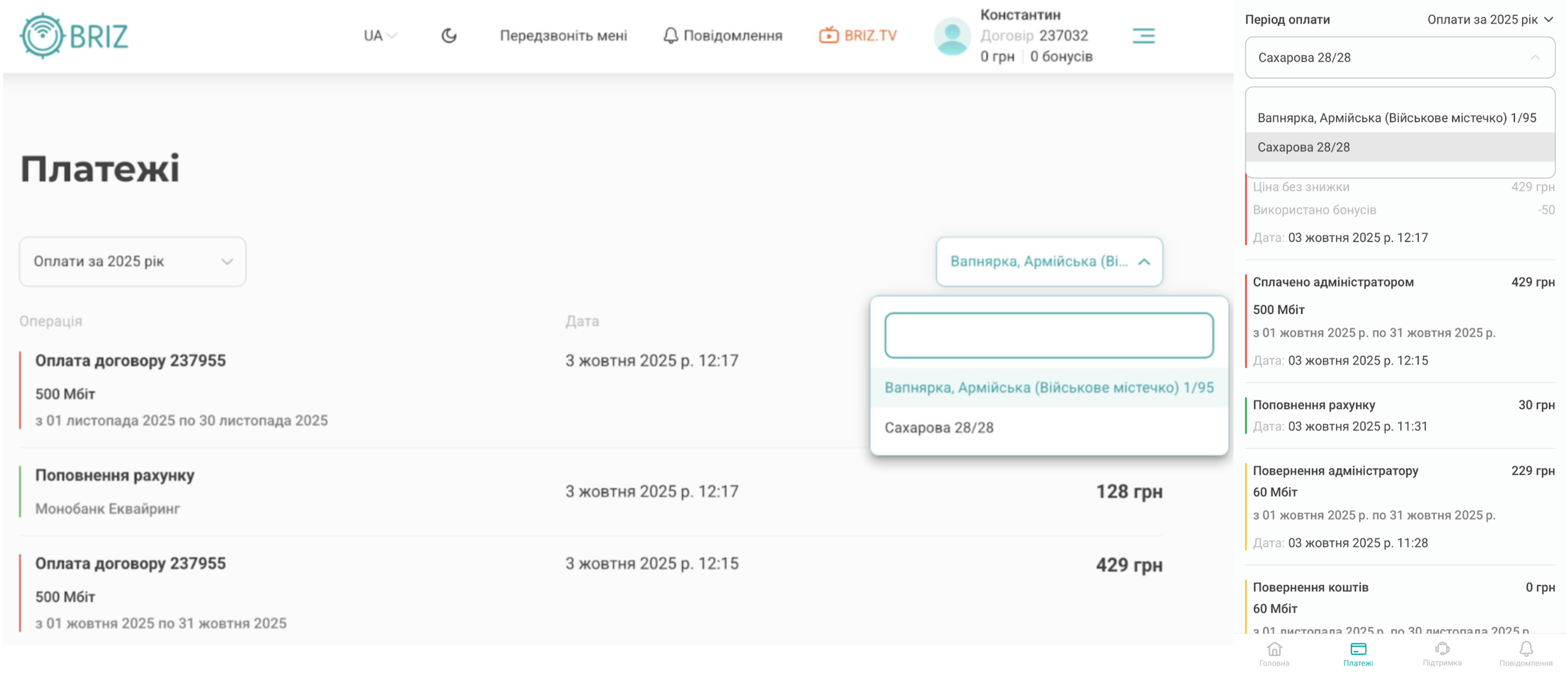 - Як оплатити послуги через особистий кабінет?