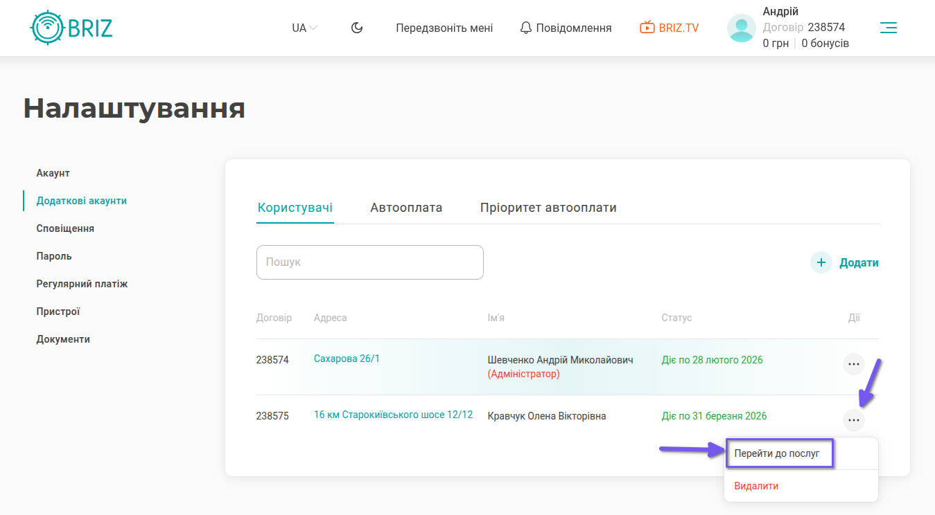 - Оберіть «Перейти до послуг».