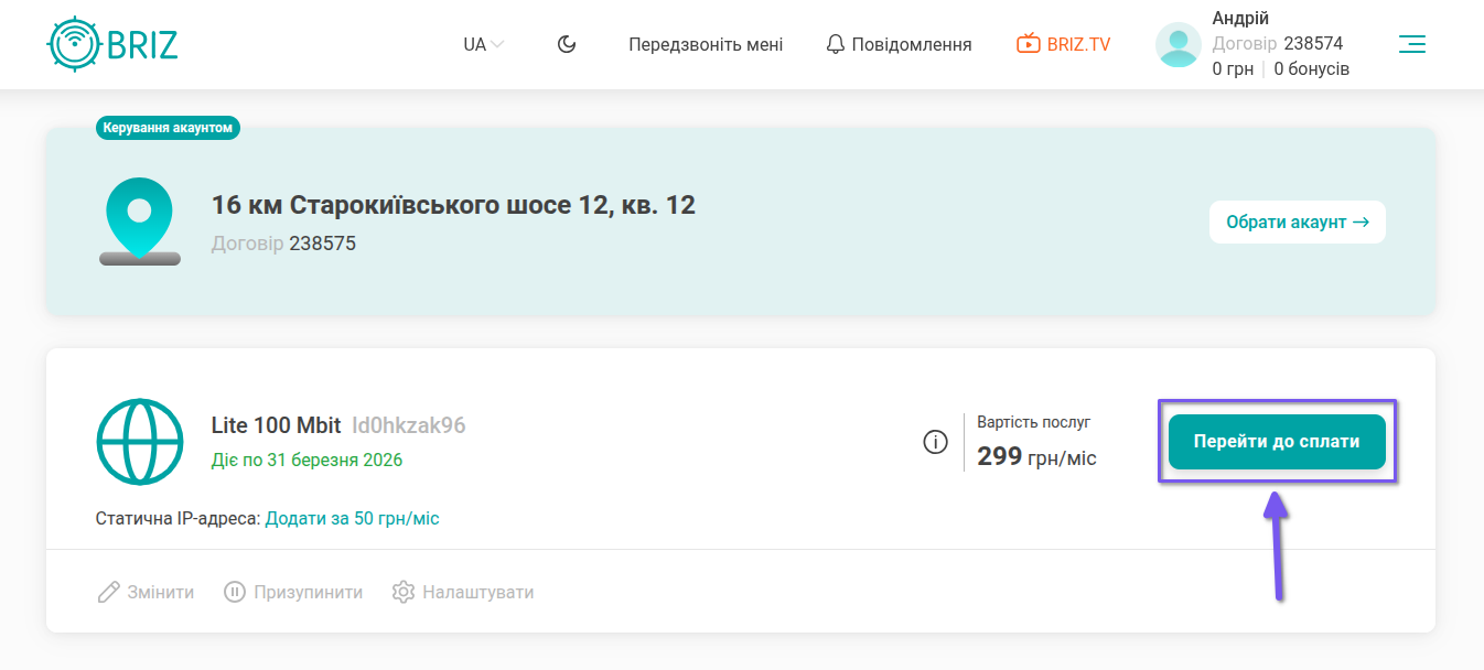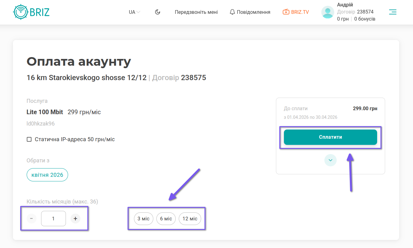- Як оплатити послуги через особистий кабінет?