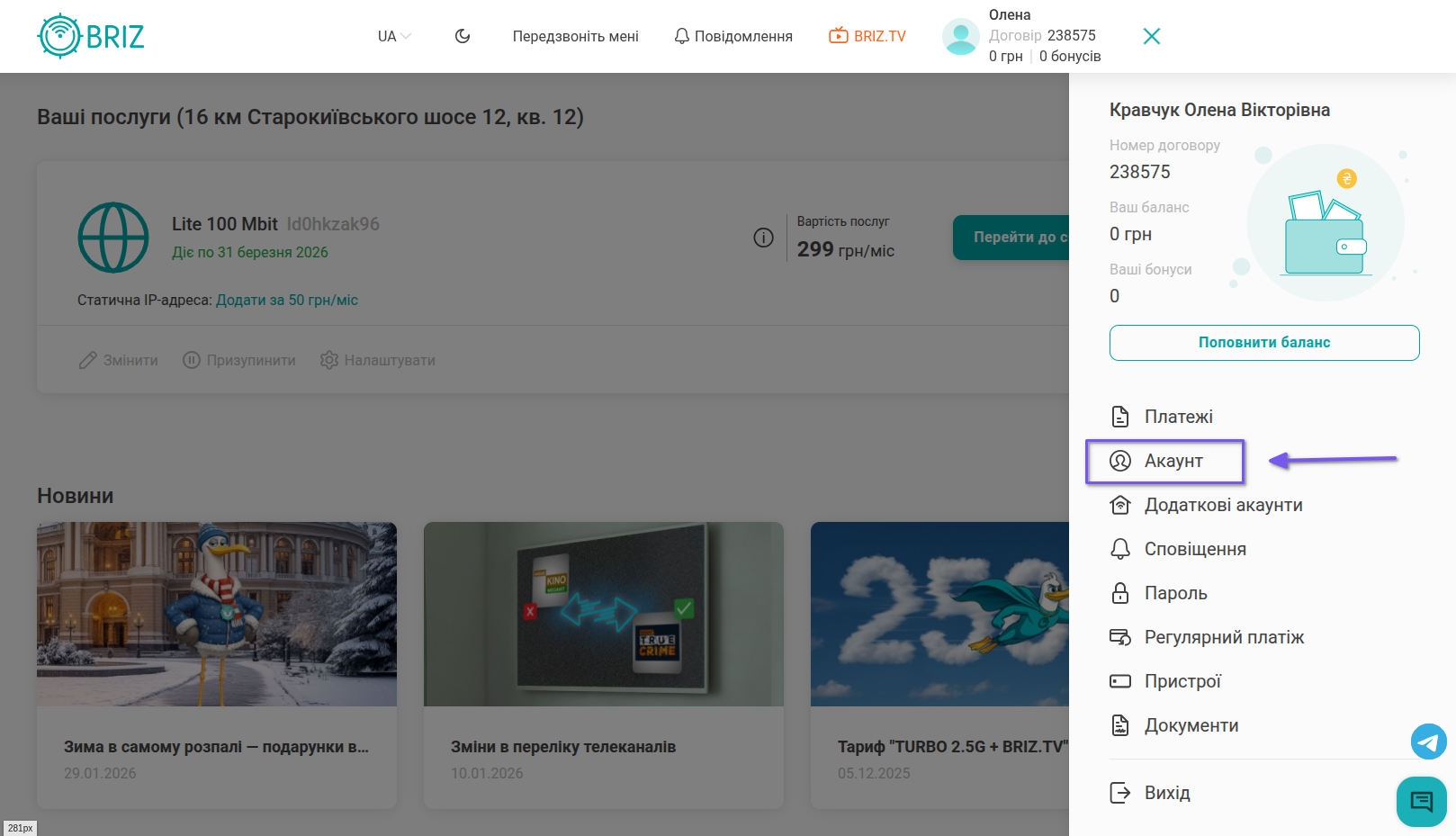 - Як оплатити послуги через особистий кабінет?