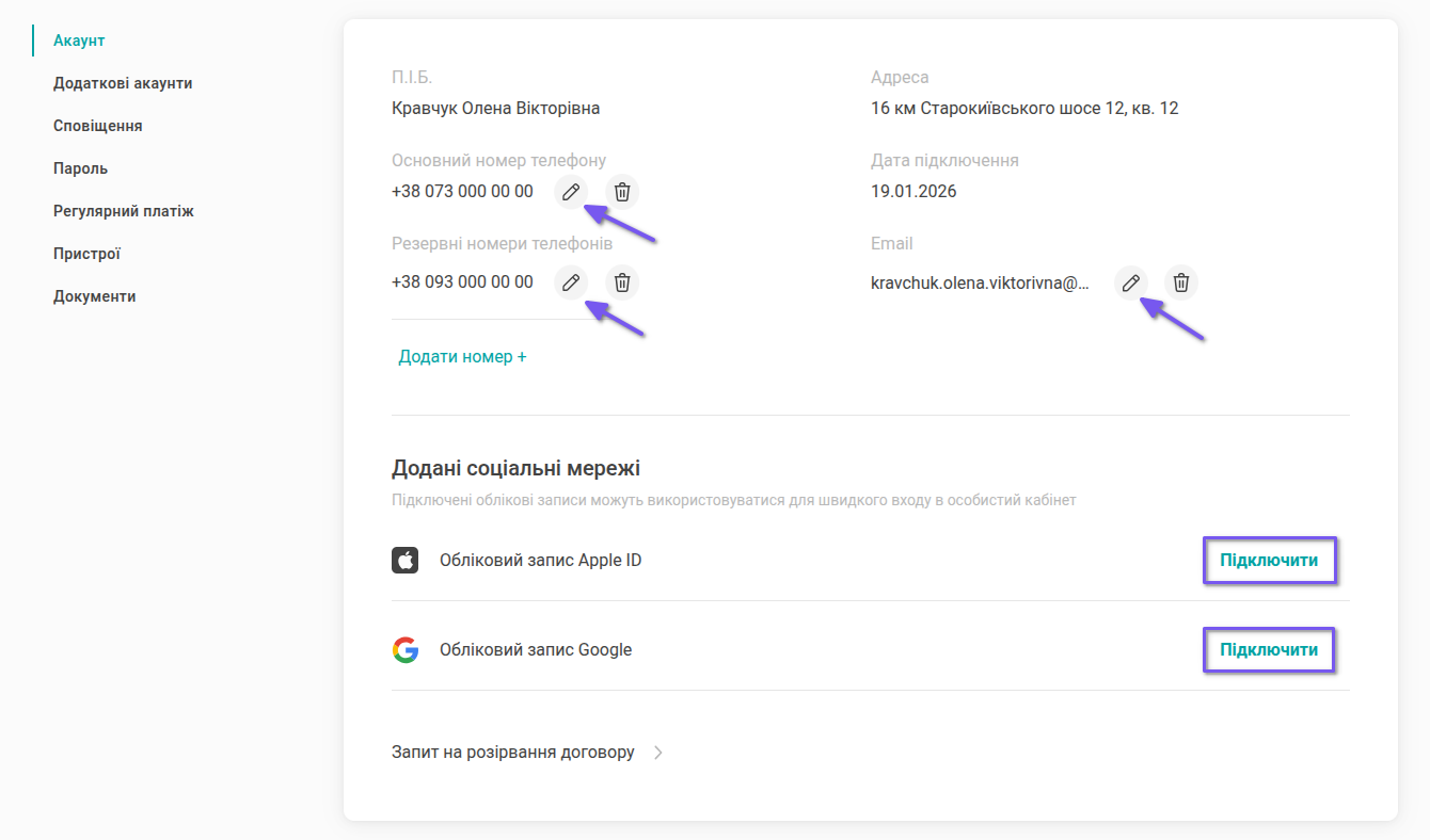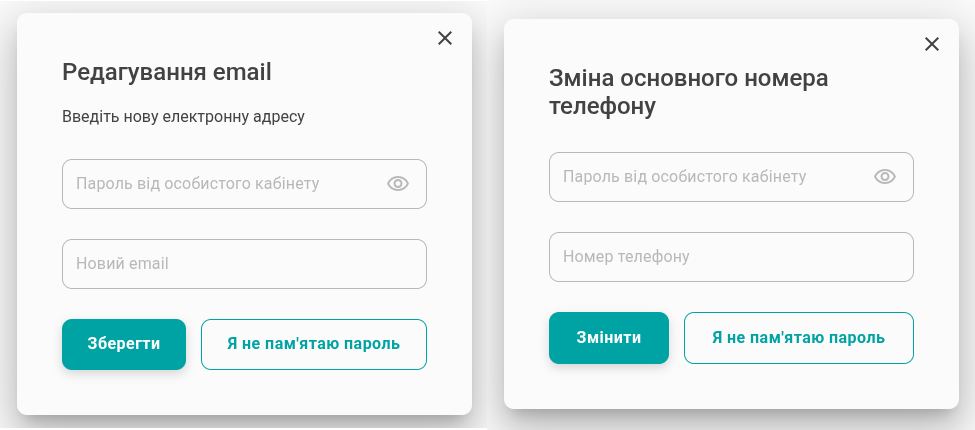Для зміни основного номеру телефону та електронної пошти потрібно вказати пароль від особистого кабінету.