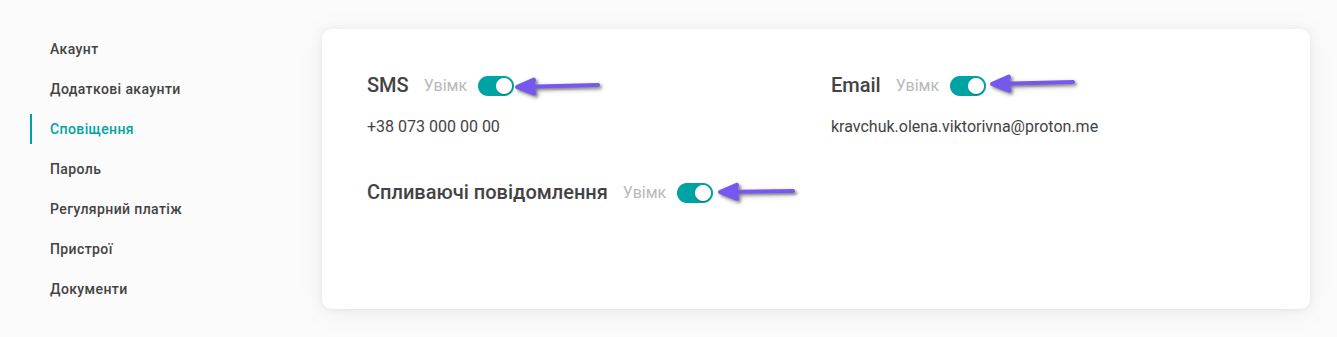 Повідомлення будуть надходити вам на пошту або телефон. Для цього з налаштувань облікового запису перейдіть у вкладку “Сповіщення”.